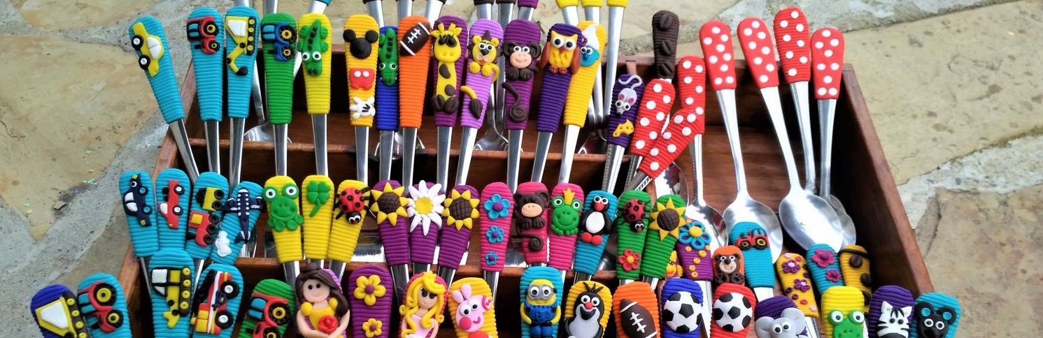 Jedná se o kvalitní příbory z nerezavějící oceli ručně dekorované polymerovou hmotou FIMO, které je zdravotně nezávadná. Na přání vám zhotovím jakýkoliv motiv. Ukázka mé tvorby je níže.